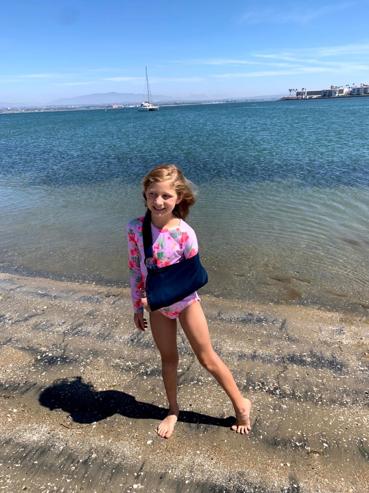 Being human at that moment of crises was humiliating and debilitating at a level I’ve only felt when Lilian Grace was dying. I couldn’t save or fix her. Lily’s fate of dying was happening without my permission or say. I felt the trauma from eleven years ago swallowing me whole in the depths of the water. I could almost see my expression with bug eyes, gaping mouth, and cringed forehead, highlighting pure horror, panic, and weakness. Furthermore, I was fighting to do anything and everything. I kept coming up short. At the time, I wasn’t sure how the San Diego Bay looked as a whole. I just kept picturing Piper finally losing it and somehow getting into the water where she was not only limited with a broken arm, but I was holding her swimming abilities to my failures of not being able to swim to her.
